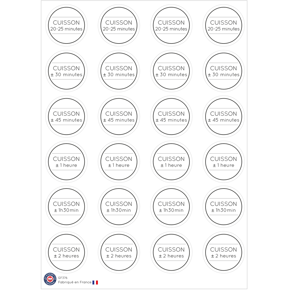 Organisez votre cuisine et facilitez vos préparations avec nos étiquettes cuisson 20 minutes à 2 heures. Parfaites pour indiquer le temps de cuisson de vos légumineuses, céréales, plats mijotés ou préparations longues.