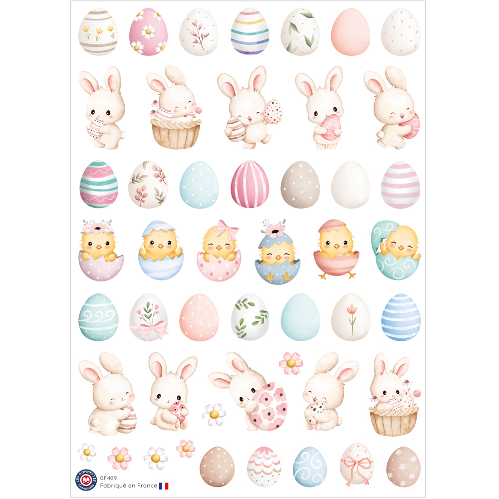 Apportez une touche de magie printanière à vos créations grâce à la planche d’autocollants de Pâques.