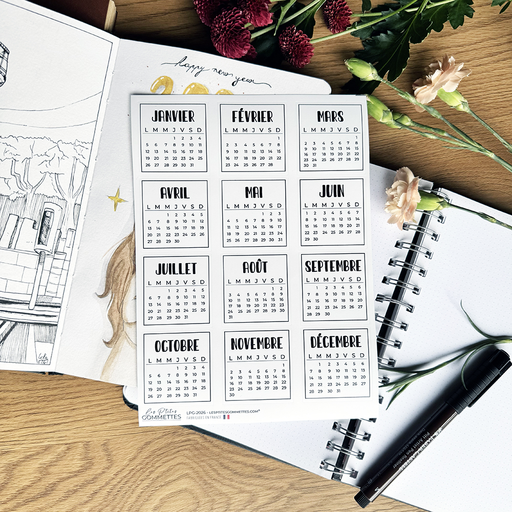 Préparez votre année 2026 en un coup d’œil grâce à cette planche de 12 autocollants calendrier mensuel. Chaque autocollant représente un mois, de janvier à décembre 2026. Parfait pour les planners, bullet journals, agendas ou carnets.